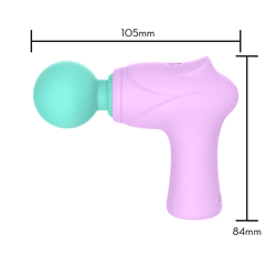 Mini massageador em formato de pistola revestido em silicone com toque aveludado.